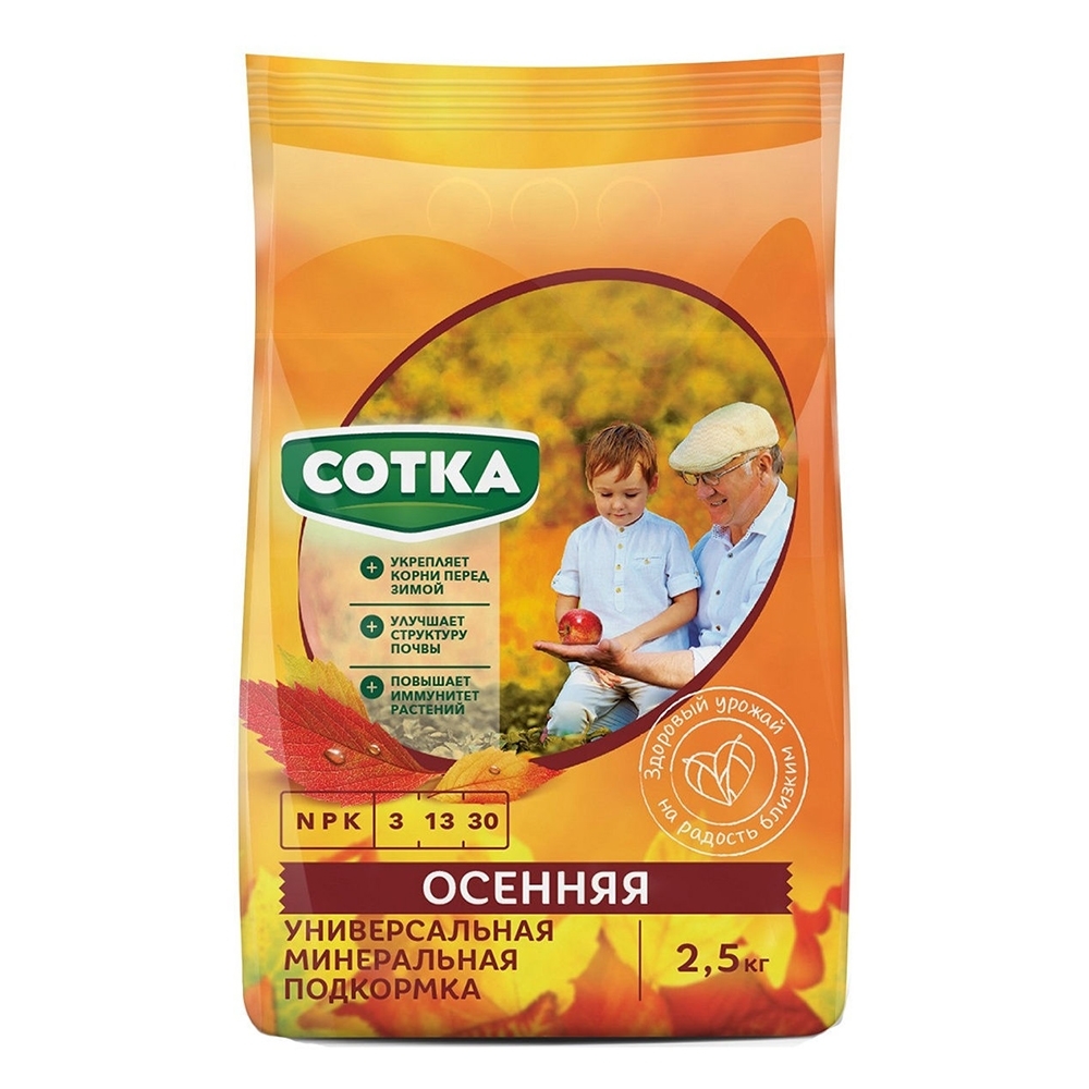 СОТКА ОСЕННЯЯ2,5кг6шт/м (3:13:30) Специализированная гранулированная комплексная осенняя подкормка.